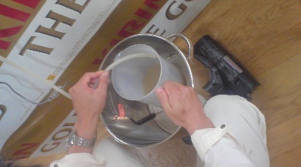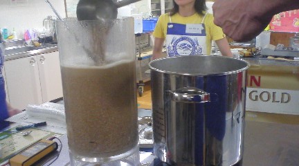 今日はビール作りで貼れなかった一番絞りの状況を貼っておきます。前の写真の次の段階で、甘い麦汁を粕と分離する作業です。