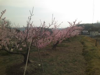 近所で桃の花が満開です。桃の花をみてると、桜があせて見えるくらい濃いピンク色でとても綺麗です♪