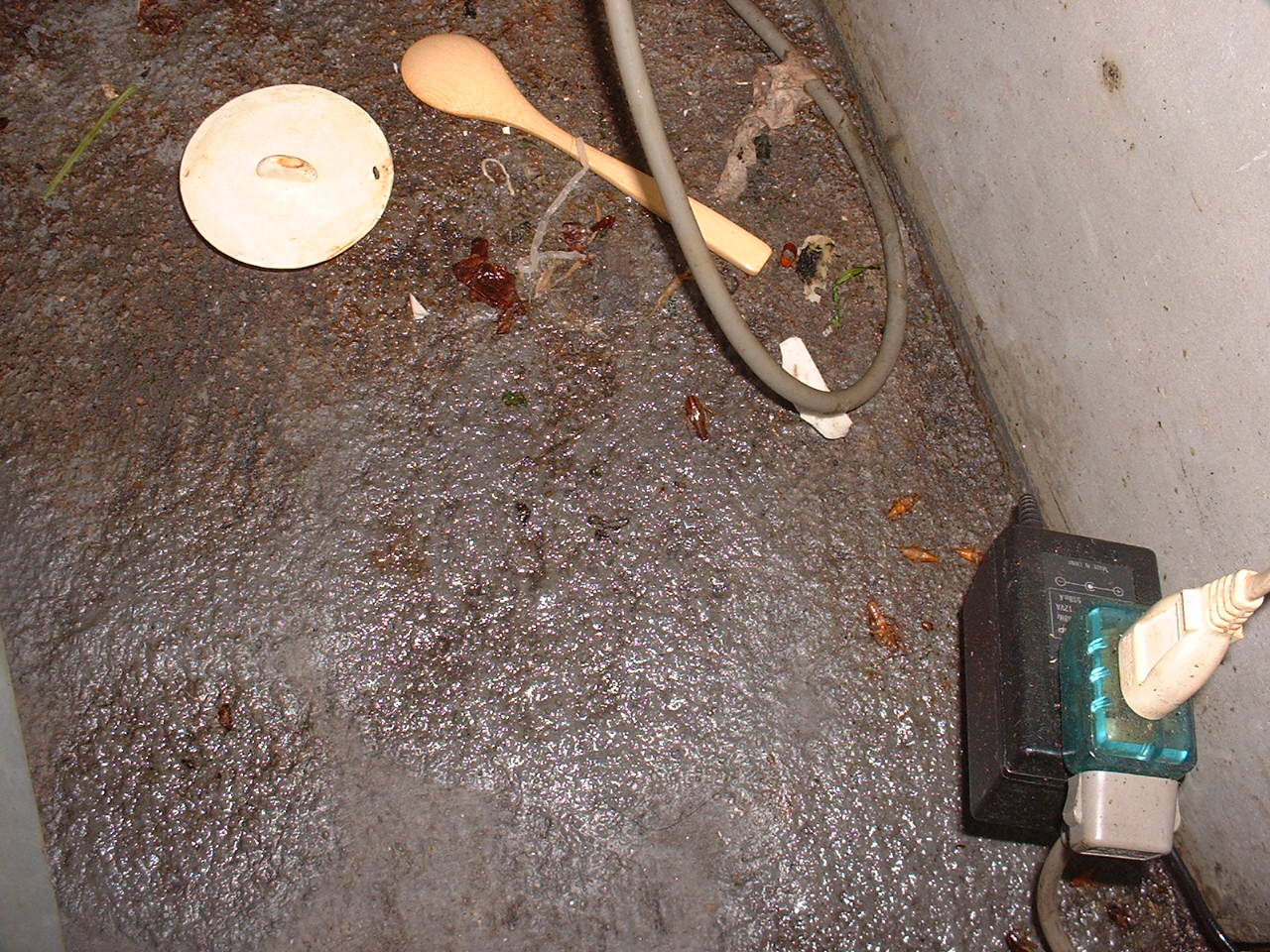 駅前ビルの地下にある居酒屋の害虫駆除をしました。グループ関連の居酒屋の害虫駆除をさせていいただいて、それがうまくいっているとうことで、今回お声がかかったという、うれしいお話です。2時から仕込みということなので、昼ごろを目安に行いました。ゴキブリが出る箇所を事前にテストしておいたので、そこを中心に全体に駆除作業をした。ちいちゃなゴキちゃんがウヨウヨいました。まずそれを退治して、床の奥にあるゴミをできるだけかき出し、天井から壁、引き出しに至るまですべてに施工。液材噴霧は壁と床の境に、ジェル状のベイト剤は、ポイントを押さえながらあらゆるところへ施工。3時間半、無事施工終了でしたが、奥のコーナーで荷物が積んであり取り出せない個所は、施工不可…だから、そこが心配です。ゴキが一匹いたら100匹いや1000匹いるという。…さあ、結果はいかに!
