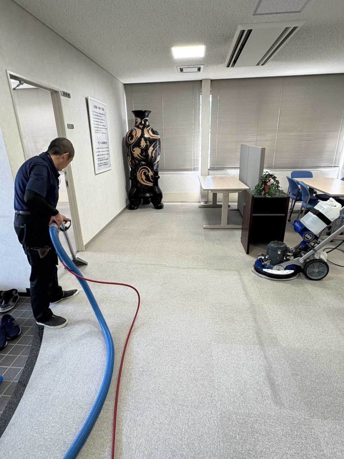 *************************************************************昨日は、1000㎡のカーペット作業に行ってきた。前半9時からと後半の18時からに分かれての現場初現場で、勝手が呑み込めていないせいもあり少し戸惑いながら、洗浄機器も選びながらではあった。古いカーペットはすり減っていた箇所もたたあった。スティーム洗浄が条件の現場ブラシで回して,スチィームでのリンスをしていたがいまいち…途中から、洗剤塗布後スチィームで回収して、オーボットで仕上げそんなやり方に替えてみた。上りはこのほうがよく、前半はこれで納めた。湿度がかなり高いカーペット洗浄。暑さもあり、ばてた。夕方からは、スタッフ3名でやることに。帰社して、休んでいると眠気が襲った。小一時間ほど、椅子に掛け寝た。目がさめた。身体がだるくなった。やる気がおきなくなる。週末はいつもだいたいそうだが、昨日はカーペット洗浄の疲れもあり余計だった。夜の部は21時過ぎには終えたようだ。8月の良い締めとなった。体力、だいぶ落ちたな~意識して望まないと、けがもする。-------------------------------------------------------------------------------------今朝は、昨日の疲れからかだるく重たい感じで目が覚めた。庭に水くれをして、汗をかいた。今日も暑くなっている。明日から9月、自分の月だ。中盤に69歳に。もう70だ!!!いつまでも若い気ではいられない。*********************************************************************