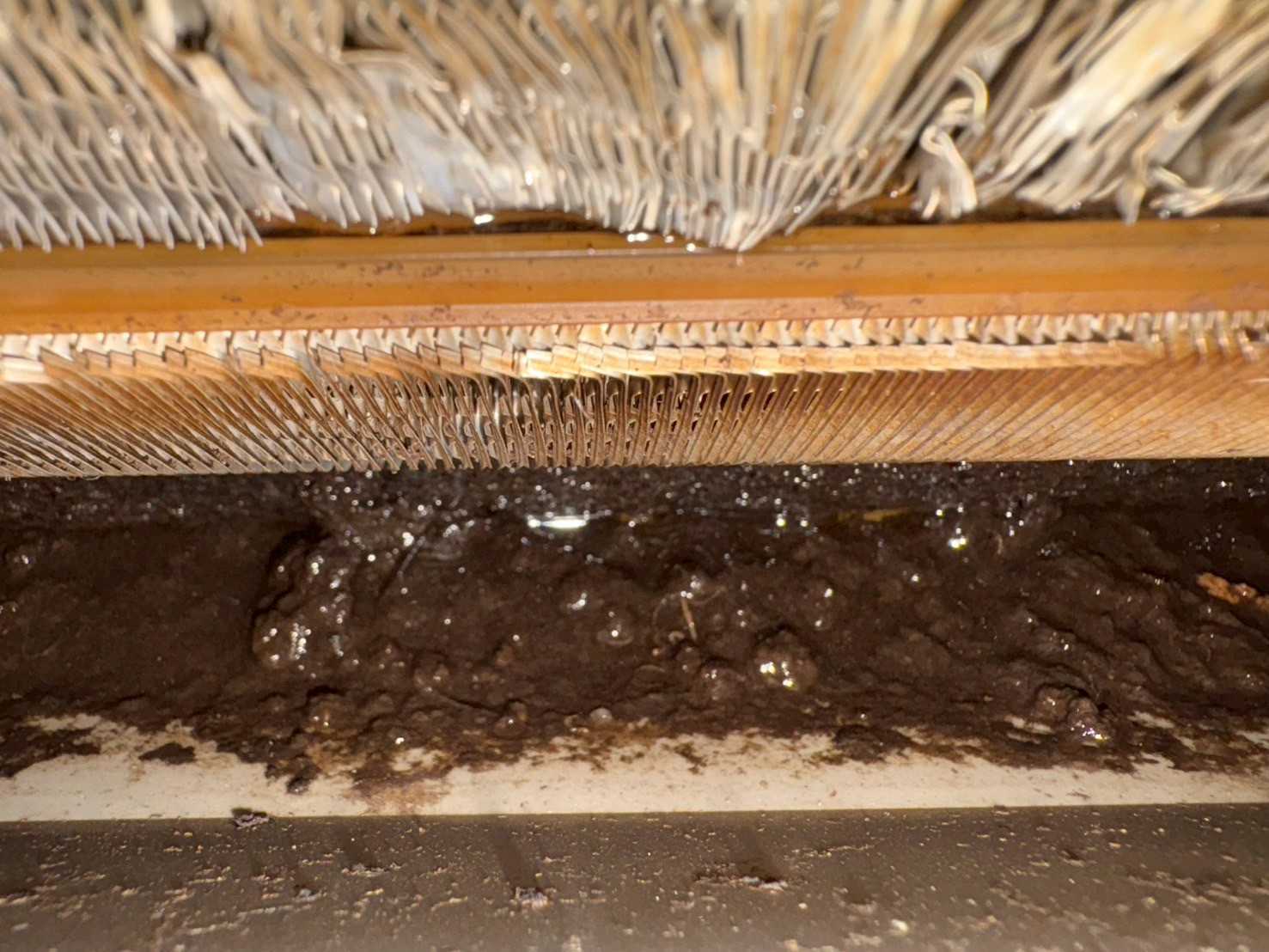 *************************************************************スナックのエアコンから水漏れがするので、洗浄してほしいといわれ一昨日、急遽Iが駆け付けた。洗浄前の写真を送ってきたが、もう汚れまくっている。洗浄後の写真送ってきた。キレイになった??そして昨日ママさんからまだ水漏れがするというので、Sと見に行った。すると、ドレンがドロドロだった…これが原因か???ドレンを洗浄&フィンも洗剤がないので水で洗い流したすると、どろどろした汚れが落ちてくる洗い足りない…中途半端な洗いになっている。うす暗いと言っていたが、懐中電灯で照らせば確認はできる。意識の問題なのか?!そこまでしかできないのか????これでは洗浄しましたという事にはならんな!!!組み立てて試運転。???まだ水が落ちてくる。しかも、ドレンではなくフィンの奥の方から一筋の水がそれが背板のスポンジに落ち、そこに溜まり横に流れ水がぽたぽたと。何が原因なのかわからなかった。エアコンも13年前のもので、修理も聞かないやつ交換が妥当だと思った。とりあえずこれで使ってもらい、冬は暖房なので落ちては来ない取り換えるなら来年??もう一回、しっかり洗浄するという事も考えているがどうなんだろう???いろいろ勉強になる---------------------------------------------------------------------------------今日は8月納めガンバルンバ!!!!!!*********************************************************************
