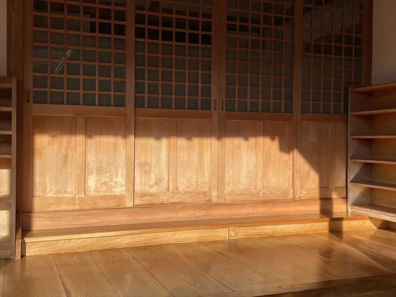 お寺の無垢の引き戸のアク洗いをした。