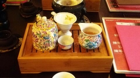 7月上旬のことですが・・・・(;'∀')渋谷の華泰茶荘に行ってきた!!中国茶”通”の人たちが通うお店ってイメージ。渋谷という立地にありながら、異文化情緒満載で、ちょっと非現実的な、海外旅行気分を味わえる私が行ったのは平日だったからなのか分からないけど、いくつかの客席の上に保温ポットや茶盤が積み重なってて、店内の一部が物置みたいな感じになってたのが、ちょっと気になったけど。。中国っぽい自由さもありつつ、なのかな。私が注文したのは、菊普茶という。プーアル茶に菊の花を加えたブレンド茶。珍しい!気がする!飲んでみると、確かに。ふんわり菊の香りがあって、面白い。味も飲みやすかった席に電気ポットがあるから、お湯沸かし放題!お湯無くなったら追加してもらえるから、飲み放題!!いい雰囲気長居しちゃいました~~