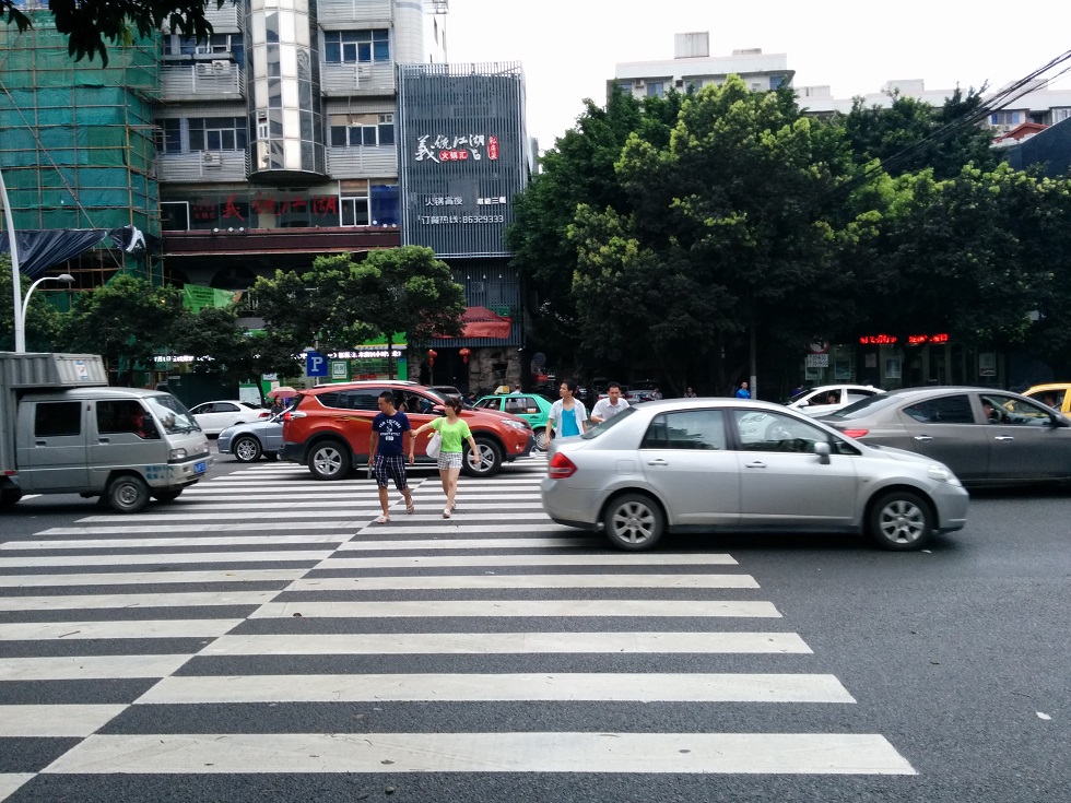今住んでる家の近くの横断歩道。片道3車線の大きな道路なのに信号がないから車と人が入り乱れてる(笑)ちなみに横断歩道も半分白と黒がずれてる。。。なぜやっぱりここは中国だ・・・