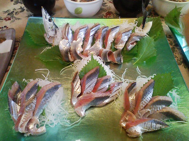 さて、今回も 刺身 にぎり寿司 塩焼き のフルコースにて、 美食倶楽部 の仲間を集めて 「サンマ祭り」 を催したのである。 サンマ をおろすのはもうすっかり慣れたので、刺身包丁で綺麗に3枚におろし、皮を剥いで骨を取れば(これが一番難しい)刺身やお寿司用の さく が完成である。8尾ほど さく にし 姿造り お寿司 にしたのである。お寿司は生サンマのものと、 バーナー で炙る 炙り寿司 である。なかでも 炙り寿司 はとても 好評 であったのだ。