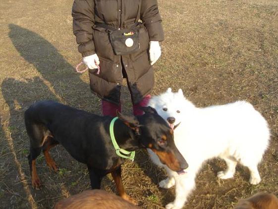 人見知りのボーダー嬢とは遊べなかったけれど、サモエドのカサブランカちゃん(1歳半の女の子)とは仲良しになれたの。