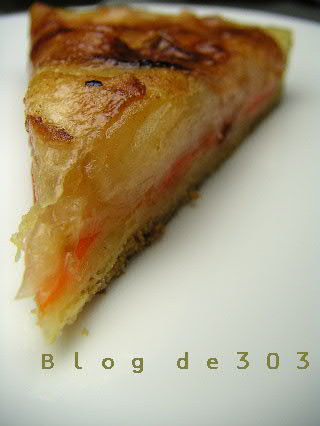 ショコタ;こんばんは。ショコタです。頂き物の紅玉を使ったタルトの続きです♪ホールの写真撮影を失敗してしまったので、いきなりカットした写真になります。全体像は以前紹介したタイプと同じような感じです。フランス菓子として、よく見かける姿ですね♪土台は昨日と同じくパート・ブリゼを使用します。昨日とは生地の厚さが違う点にご注意ください。こちらのタルトのほうが薄く延ばしてあります。パート・ブリゼにレモンクリームを、うす~~く塗ります。チーズケーキに使用した残りです。その上にスライスした人参を敷きます。人参の層を覆うように紅玉3個分のスライスを並べていきます。 山のようになりますが大丈夫です。 敷き詰めたリンゴにグラニュー糖をまぶし、小さくカットした発酵バターと、薄い板状に冷凍しておいた生クリームを砕き散らしたら後は焼くだけです。190度にしっかり予熱しておいたオーブンに入れ様子を見ながら50分から60分。 じっくり焼きます。リンゴのジュで柔らかくなった人参は、柑橘類のような香りを放つと共に 穏やかな甘さをタルトに与えてくれます。 レモンクリームの酸味で紅玉の持つ酸味を持ち上げてみようと試みました。 スライスした紅玉は人参の香りとレモンの酸を従え、みずみずしさに溢れています。昨日のタルトは食べ応えを感じさせますが、こちらのタルトのイメージは喉越しです。 パート・ブリゼを薄くのばしたのも喉越しを妨げないためです。 焼きあがったタルトの表面には、紅玉の皮と芯を煮出してジュレにしたものを塗ってあります。 写真からジュレがうっすらとピンク色なのが伝わりますでしょうか??人参ですが、はっきりと人参臭いものを使ったほうが美味しいと思います。