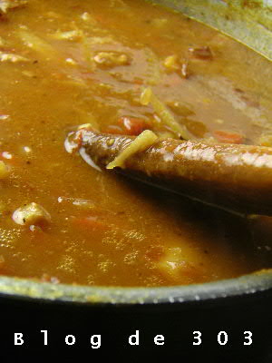 ショコタ;こんばんは。ショコタです。先程の日記に、ちょこっと書いた、例のカレーが出来上がりました。一晩寝かせてから、いただきま~す。冷蔵庫整理整頓カレーの材料として鍋に放り込まれたものは・・・では、再びパラパラ漫画で紹介を・・・(しない、しない。)平田牧場豚ばら肉の塩漬け、豚肩肉、ヒレ肉の筋、牛切り落とし肉、飴色タマネギ、ソフリット、ちくわ、タマネギ、人参、ジャガイモ、グリンピース、キャベツの芯、ゴボウ、鶏のブイヨン。う~ん。特にポイントなしです(笑)。つなぎの強力粉は大匙2くらいです。ゼラチン状の鶏のブイヨンのおかげで、さらりとしているものの深みはあります♪豚バラ肉は脂を、しっかりと焼ききってありますので、チヨコも大丈夫なのです。とろとろです。。カレーって、突然、食べたくなります。よく食べてはいるのだけれど、日記の登場回数は2回目かな?303の夏カレーはこちらから。