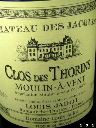 【 MOULIN-A-VENT Clos des Thorins 2000 Louis Jadot 】こんばんは。ショコタです。今日の日記は、返しではなくホントに赤ワインです♪【 ムーラン=ア=ヴァン クロデトラン 2000 ルイ・ジャド 】グラスに注がれたばかりの液体の香りは沈み込んでいるものの埃っぽさの奥の方に色濃い紫の果実の香りが潜んでいるようです。その果実たち、さざめいてはいるものの目覚めが悪いのか立ち昇ってくるのにはまだ時間がかかりそう。微粒子のタンニンが細波のように押し寄せ舌の全面に広がる・・・ひっそりと舌に吸着するような渋み。あまりにも密に接してくるためか他の要素を感じ取りにくい。ざわざわと落ち着きのなかった香りは時の経過と共にまとまり始め、渋みは肌理細やかに立ち現れては消えてゆく。出遅れているのは酸味だけだ。たっぷりと残して翌日に持ち越してみることにする。さて翌日♪香りは装いも軽やかな印象。これはいいぞ~。果実の色彩は明るさを増し可愛らしい表情に変化していた。 昨日見られた埃っぽさ、鼻に抜けるような感じとは違う、くぐもるスパイス香をさらりと脱ぎすててチェリーのクラフティーにミルク多めのコーヒーを合わせたような(??)いい香り。わからんもんです。たっぷり残しておいて正解でした。渋みも凪いだようで口当たりは滑らかなのだけれど、いかんせん酸味のほうは息を吹き返すわけでなく、そのためか締まりない平板な様相を呈する。パスタを食べながら美味しく頂くことができました。ルイ・ジャドのガメイ種のワインに対する真摯な姿勢を垣間見ることができたような気がします。ルイ・ジャドさん、いつもありがとうございます♪いつもの“顔”が肩にしか見られませんがやはり素敵です。うっとり。