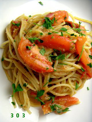 ショコタ;こんばんは。ショコタです。パスタの日記久々だな~。最近、写真撮らないで食べちゃうから・・・(笑)。今日は割りとお腹も落ち着いていたので、撮影できました♪お肉料理のために用意した《舞茸、牛蒡、生ハムのムース》の残りとトマトを使ってのパスタ♪ 舞茸、生ハムを細かく刻み丁寧に炒める。 白ワイン少々、赤ワインヴィネガーを加えて水分をしっかり飛ばす。 ローズマリー少々、牛蒡(分量的には舞茸よりも少ない。)を加えてさっと火を通す。 牛乳に浸けた食パンを加えてフードプロセッサーにかける。刻んだトマトを塩、ワインヴィネガー、オリーブオイルで軽くマリネ。でてきた水分も一緒にピュレと合わせてソースに。。お肉料理では牛蒡の存在を全面に出す予定なのですが、このパスタの主役はトマト!!トマトを皆の力で引き立てることが狙いです。おいしかったです♪チヨコも大満足でした。