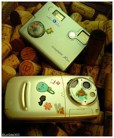 こんにちは。ショコタです。漸くカメラの供養をすることができます。といっても新しいデジタルカメラを購入したわけではないのです。 先日、チヨコと携帯電話の機種変更手続きに出掛けてきました。最新ではないが割りと新しい機種に無料で交換できるとの広告をチヨコが見つけてきたのです!今時そんな古いタイプの携帯使ってる人いないよ!と、いつもチヨコに言われていたのですが、遂にショコタの携帯も、な、な、な、何とカメラ付き携帯になったのです!!!(みんな付いてるのかな…カメラ。)無料交換可能な6機種の中で特にカメラの性能がいいものを選びました♪初代デジカメの姿を美しく撮ってあげたい!初代が壊れてから今日までこのブログの画像を支えてくれたチヨコの携帯とともに撮影してみましょ!シール、ペタペタ貼ってますが…(笑)。 ところが、いざ撮影と2台のカメラを前に意気込んでみるものの何故かシャッターを切ることができないでいた。 デジタルカメラなのだからいつも通り何枚も撮って気に入らなければ消去すればいいのだが、シャッターを半押しするばかりで1枚も撮れない。光の具合やピント、構図がどうのこうのと言うことではなく、ディスプレイに映る2台のカメラがどことなくよそよそしく冷たいのだ。初代カメラ。まさかモデルになる日がくるとは考えてもいなかった…。 次第に撮影する気も薄れ、カメラを固定する肘の強張りもとけると、鮮明にカメラの壊れた日の事を思い出した。その日に綴った、長い長い日記を思い出した。今年の3月17日、ミルフィーユ・ショコラを最後に僕らの食卓と日常を切りとることのできなくなったカメラ。パソコンやカメラの知識に疎い僕とチヨコが深夜に放送していた“分割手数料いっさいなし!”と甲高い声で叫び続ける社長さんでお馴染みの通販番組で購入したノートパソコン、カラープリンターと抱き合わせのデジタルカメラ。軽い気持ちで開設したブログだが、チヨコと僕の過ごす何気ない日常に僕らも気づかぬような美が溢れていることをこのカメラに教わった。そんなことに思いを巡らせているとディスプレイ越しに見える2台のカメラの肌合いが激変した。光源も撮影設定も変えていないのに、ただひたすら静かな美しさを放っていました。303の風景として僕とチヨコの中に残そう。今日までありがとう。感謝しています。2006.3.24の日記から今日まで活躍したチヨコの携帯♪クマちゃんに金魚もいますねぇ~(汗)今日から僕らの日常を切りとってくれるのは彼らです。よろしくお願いします♪あちゃ~、もうシール貼っちゃってます。キュートな蜂ですね(大汗)。。(以前の携帯より貼りがいありそうで危険!!) ちょっといいかしら~?(←チヨコ参上!ショコタ、2人分のコーヒーを用意しに台所に消える。) ペタペタ貼ったシールのことなんですが、洗練されたスタイリッシュなケータイに、私ったら、どうしてすぐにシール貼りたくなっちゃうんだろう?って考えたんです。しかも統一感のない“ただかわいい!だけのシール”をランダムにペタペタと。 きっとこの“洗練された完璧なフォルム”を壊したいんだ。という事に思い当たりました。大手企業のデザイナーさんが提案するそれぞれの商品デザインには各々のコンセプトがあって非の打ち所はないんです。(←少なくとも私にとっては)でも、だからなんです。 ただその感じがチヨコの肌に合わない。決して、おしゃれ感を増すためにとか、オリジナリティーを演出するためにシールを貼ってみるんじゃなく、私に対してカッコ良過ぎないように少しの遊びを取り入れたいわけです(少しどころかモロ悪趣味になってますが!?)。決まり過ぎが苦手なので、ニュアンスにアンバランスさを求めてしまうのだと思います。 例えてみると、それはお洒落なセーターの袖口の毛玉だったり、キザなジャケットに付け忘れたままのクリーニングの札だったり、高級バッグの中に潜む手作りポーチだったり♪アンバランスは、アンバランスな私の自然体なんです。そんなんが結構好き。そんな理由でショコタも好きです(!?)コーヒーが入ったようなのでこのくらいにしときます。↑初代カメラのメモリーに残っていた最後の1枚がこの画像です。 再びショコタです。ミルフィーユ・ノワールの日記は画像からどうぞ。この時、気持ちは最終回だったのですが…続いていますね(笑)。コメントを寄せてくれた方々に感謝しております。そうそう機種変更の際、変更可能な機種はどれも数字が“902”だったのです。FOMAの意味すら分からない僕は店員さんにお願いしてみました。「変更機種ですが、出来ることなら“303”がいいんですが…。ありませんか?“303is”とか??」隣に座っていたチヨコのつま先が僕のふくらはぎ辺りを蹴り上げたことは言うまでもありません。。。こ、これで良いです。チヨコと色違いの黒で!ははははははは。そんな訳で(どんな訳だ?)これからもチヨコetショコタをよろしくお願いしま~す。。。。
