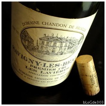 コルクを抜き、瓶の口から漏れる香りに、ちょっと違和感のある匂い。不快とまでは言わないが心地良いものではありません。時間を置いてみることにしましょう…。美味しくなりますように。。のんのん。 ゴクリ。味わいは、艶やかな果実のエキスと滑るような酸味とで飲み口を楽しいものにしてくれるのだが、いまだにその液体の風貌にはそぐわない、違和感のある匂いがチラチラと顔を出す。何なんだろなぁ~と思いながらも美味しいのでグラスを重ねていると、ボトルに残り3分の1くらいになったところで急に晴れ渡ったかのようにその匂いは消え、グラスからは赤い果実が眩さを放って揺れていた。こんなに美味しくなったのに残り僅かなんて!!!もっと待ってれば良かった~。★303に以前登場した【SAVINY-LES-BEAUNE 1er cru Les Lavieres】の造り手 【SAVINY-LES-BEAUNE Les Lavieres 2002 “LOUIS CHENU”】 【SAVINY-LES-BEAUNE Les Lavieres 2002 “Claude Marechal”】 ★以前登場した“Chandon de Briailles”の別の畑♪ 【Aloxe-corton 1er cru Les valozieres 2002 1本目】 【Aloxe-corton 1er cru Les valozieres 2002 2本目】