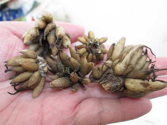 こんにちは!編集者Aです。10月21日(火)に「ラナンキュラス ワンダーランドiQ ミックス」という記事を掲載しました。その時「球根に吸水処理をした方がいいかも?」ということになり、家に帰ってからやってみました。そしてその後、球根がどうなったのかご報告したいと思います。 すごいんですよ、球根ちゃんたちと、声を大にして感動を伝えたいぐらい驚きました だって、こんなに変わったんですよ。ふっくら~ 2日前がこれですよ。カラカラでカサカササイズも少しずつ大きくなりました。 前回の画像と比べてみると・・ 一番大きい球根の拡大です。前回のブログでは横幅1.5~3.5cmぐらいと書きました。多少の測り方の誤差はありますが、吸水処理後では小さいもので横幅2.0cmぐらい、大きいもので4cmはありそうです。 ちなみに、こんな感じで吸水処理をしてみました。(あくまで私がやってみたものなので参考にはならないと思いますが)ブドウが入っていたプラスチックの入れ物に、少~し水で濡らしたキッチンペーパーを敷いて、その上に球根を並べました。その後、もう1枚キッチンペーパーを濡らして、球根の周りをぐるっと囲い、かるく包むようにしました。まさか本当に2日で変わるとは・・しかも私でもなんとかできるとは・・植物ってすごいですねさて、あともう少しだけ吸水させたら腐ってしまうといけないので早めに植えないといけませんね。元気に育ってくれるといいなぁそれでは、また ↓こちらは当店トップページです。家庭菜園用、直売店用、伝統野菜、プロ農家向き、新品種など、他にもたくさんの種を取り揃えております。