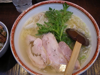 実家帰省中に、家族とラーメン食べてきました。ということで今回の休日ラーメン隊は、母・弟と行った関東編です。うちの家族はみんなラーメン好きですが、特に弟は新店・人気店と聞けば必ず出かけておいしいかどうかを確認してくるうちの特攻隊長たまの帰省時にはその情報をもとに、オススメのお店に食べに行くのが楽しみになっています。そんな情報係が今地元でいちばんうまいと大プッシュするのがこのお店。麺 こむさし宇都宮市兵庫塚町172-25 11:30~14:30/17:30~19:30 月曜休※最寄駅からのアクセスは不明。車で行かれる際は駐車場が少ないので注意してください。席数は15席くらい。カウンターとテーブル席が3つくらいです。13時くらいに着いた時は運良くテーブル席が空いていました。その後もタイミング良く客が入れ替わり、並ぶ程ではないですが程よく回転しているようです。ラーメンのメニューはらぁ麺、和風らぁ麺、塩らぁ麺の3種類。今回私が食べたのは、弟がイチオシの塩らぁ麺\600+味玉\100。弟がらぁ麺大盛り、母が和風らぁ麺でした。座って注文してほっと一息ついて、さて店内でも観察…と思うまもなく「塩らぁ麺お待ちどうさまでした~」うわっ! 出てくるのむちゃくちゃ早いがな!慌ててデジカメを取り出し、とりあえず撮ってから いただきま~す!まず目が行ったのはすばらしく美しいスープ。最初に鶏?などの動物系が香り、後から鰹などの魚系がふわりと立ちます。一口目のインパクトよりも、最後までおいしく食べさせることを前提にしたバランスが絶妙。多めに乗っているねぎとかいわれが塩のスープととっても良く合います。とても上等のテールスープ(仙台の牛タン屋などでよく付いてるあれです)のような、あっさりとしながらも旨味が出ている好みのスープでした。麺はもちっとして若干ちぢれた中太麺。私の好みど真ん中ではないですが、おいしいと思います。この麺は塩より和風らぁ麺の方によく合いそうです。チャーシューはトロトロタイプではありませんが、さっぱりとして肉の旨味が良く出ています。味も濃すぎなくてスープの邪魔をしません。最近地元のラーメン事情に疎かったくまですが、こんなお店もあったのね、と嬉しい発見でした。もうちょっとうちから近ければいいのになぁ。北関東という地域柄、ラーメン店は塩分を強めにしなければ客が入らないのか、どんなに人気店でも「ちょっと塩辛いなぁ」と感じることがあります。しかし、このお店は本当に最後の一口までおいしくいただけました。県内では大変貴重なので、この味を維持して欲しいと思います