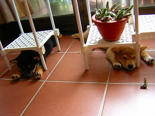 実家には茶の間の前にタイル床の小さな温室スペースがあるのですが、暑くなってくるとお犬様達が涼を求めてそこでおくつろぎになります。その時なぜか、花台の下の狭いスペースにもぐり込んで、お腹をべったりつけてくつろぐのが好きなようです。子犬の頃は、こんな感じ。なぜ前足がこんな風なのかは謎…冷たいタイルにできるだけくっつこうというコトなのかしら?ちょっと大きくなっても、くつろぐ場所は同じ場所。…そろそろムリでないかしら。どうやって潜り込んだんだか。っていうかそれ、出られるの本人(犬)はいたくご満悦な様子なのが笑えますさすがに成犬になった今は花台の下はムリですが、今度は隅っこに潜り込んでいるらしいです。時々植木鉢を倒したりして、おかんに怒られているとかこういうのを見ると、うちは本当にお犬様達が好き勝手に生活してる家なんだなぁと思います。いいことなんだか悪いことなんだか…