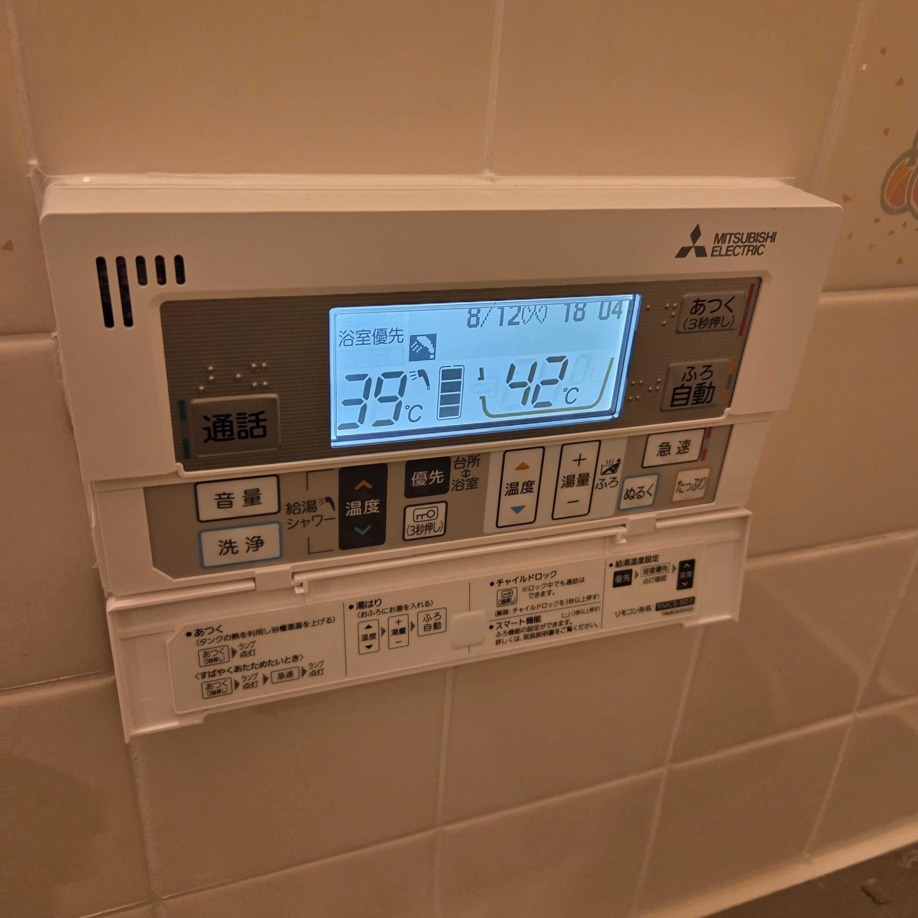 先週だったか故障して急遽買い替えになったエコキュートもちろん気持ちよく使えてるただ一つだけ残念なことが新しいエコキュートのリモコンの画面シャワーやお湯張りの給湯温度がデカデカと表示されている現在時刻を見るための時計の表示は右上に小さく表示されているこれってどうよ?給湯温度よりも現在時間を見ることの方が断然多いと思うんだけどどうですか?給湯温度なんて一度設定してしまえばその後見ることほぼないと思うそれよりも時間でしょ!?時計を大きく表示すべきじゃない?グッと覗き込まないと時計は見えない絶対逆だと思う新しいので文句なく使えているけど唯一残念なところこれの後継機からは逆になることを望むよ
