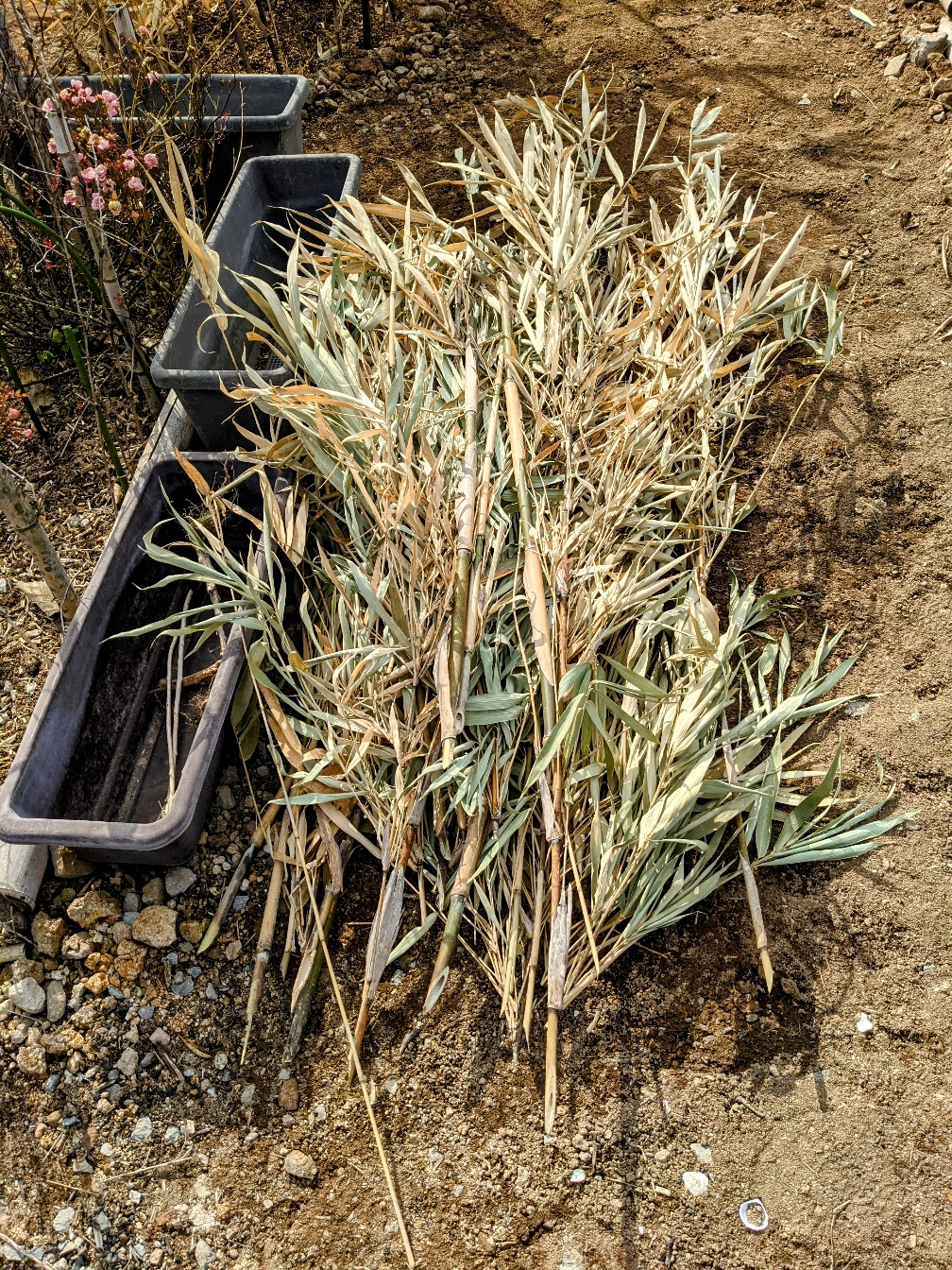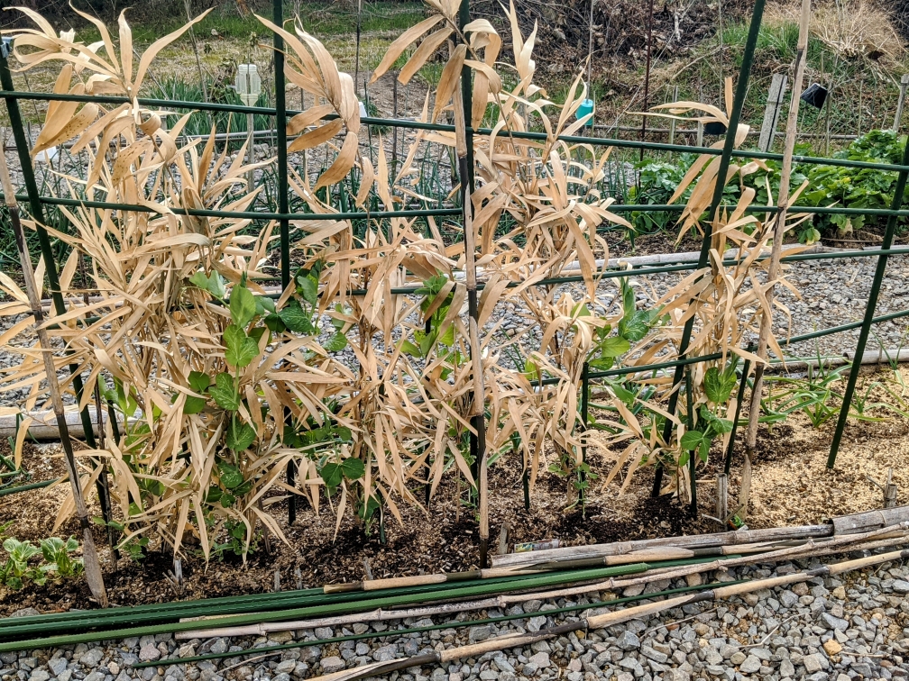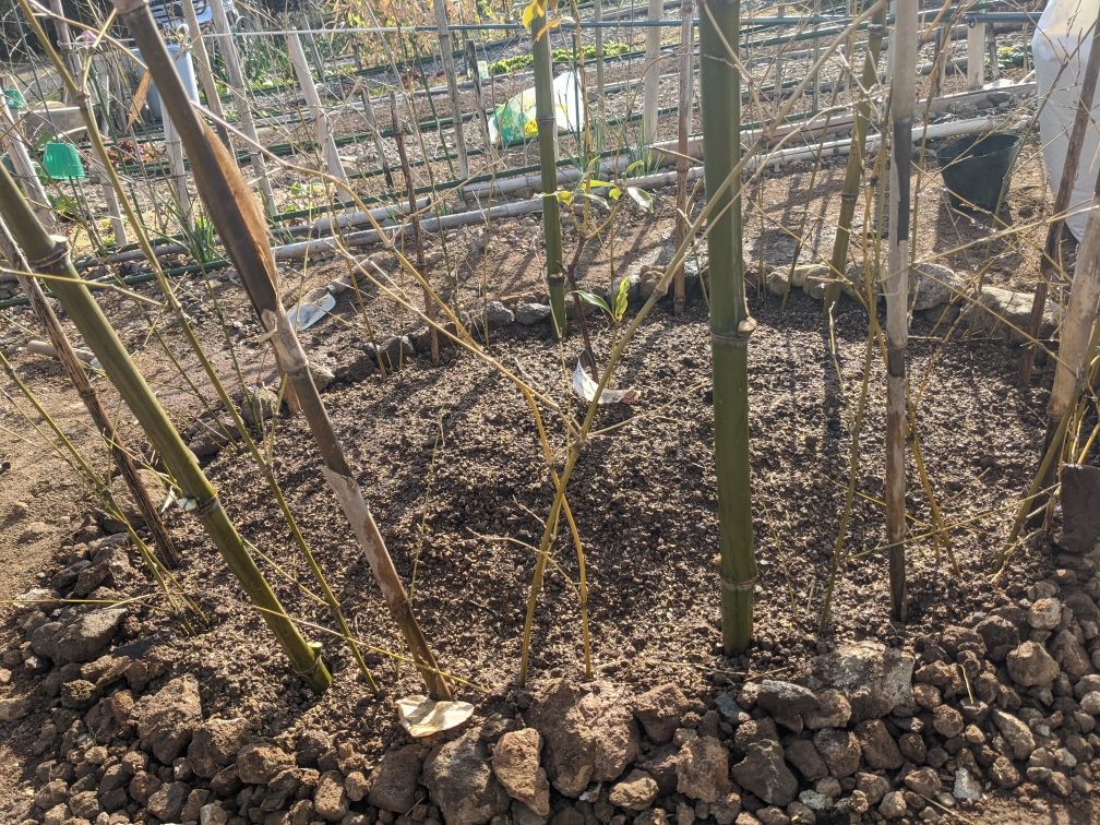 昨日も畑行きの途中で切って放ったらかしの竹を戴いてから向かったそれが、これだ⬇️ヒヨドリの被害の事も有るが、主に防寒になればと言う思いも有ります守った畝ヒヨドリにやられた「レタス」が葉っぱを伸ばしているような気がしたので、そこにも竹を立てました昨日迄で、4〜5箇所に竹を立てた!!!多少の効果は有るかな?、いや、有った欲しいな~ 😂今は、比較的暖かくなったが早朝散歩🐾👫の気温予報は−2度になっていて冷たかったが、予報通りだったのかな?家内が出かけましたがオジサンは、何して遊ぼうかな?😂😂😂