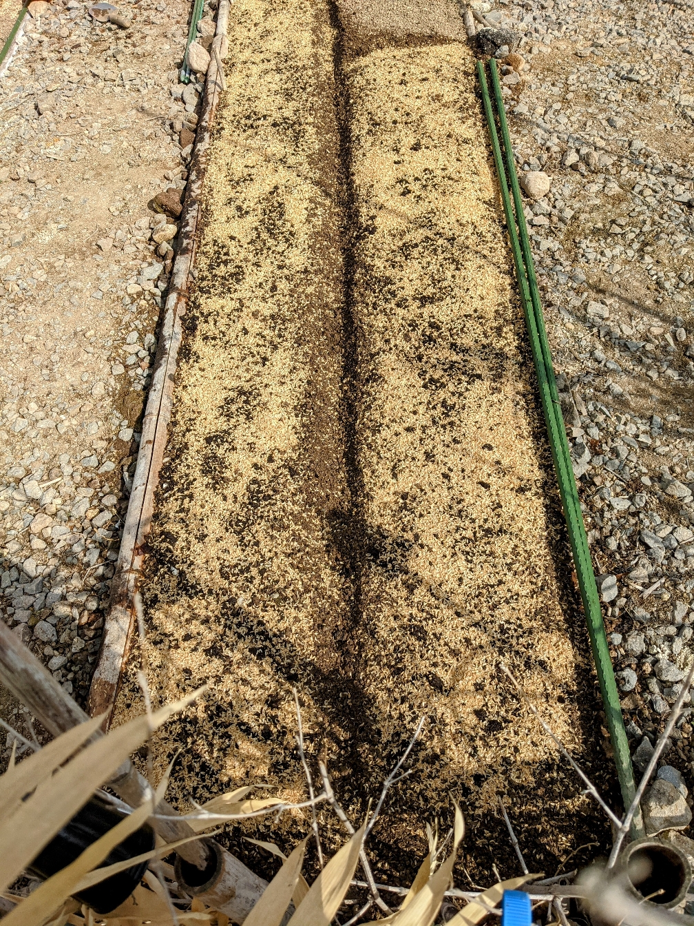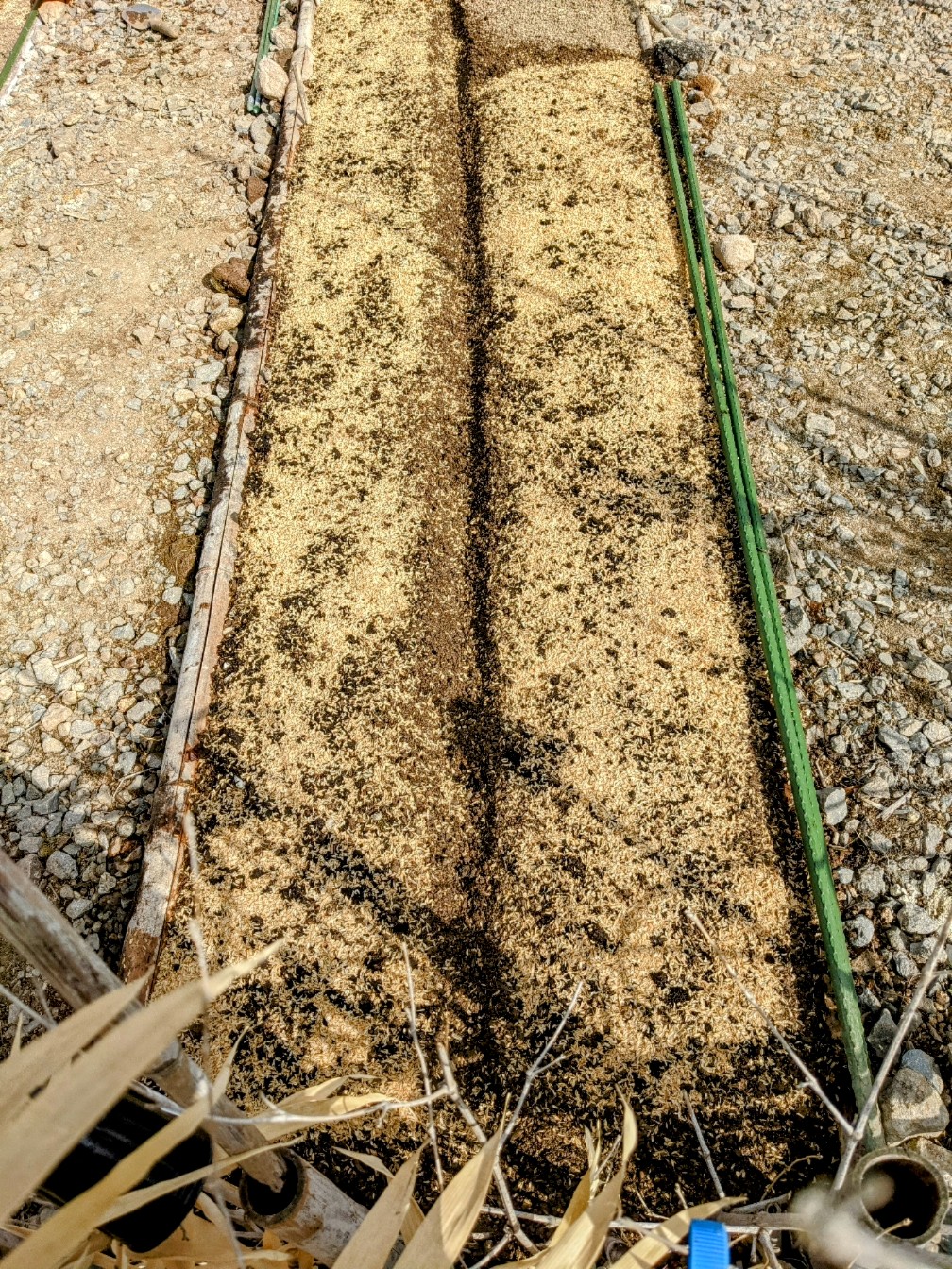 昨日は、畑遊びをサボる事を考えていたオジサンですが生ゴミが、ソコソコ出たので「埋め込み」に行って来た😂 ※もう直ぐ、 生ゴミ埋め込み場所(畝)も無くなりますその「生ゴミ埋め込み」を終えてから先日植え込んで籾殻覆いをした「里芋の親芋」畝に再度の籾殻をバラ撒いて⬇️そして風で、その籾殻が飛ばない様に新たな土を軽くバラ撒いて覆いをした⬇️ ※逆方向で撮ったので変な感じが😂 左横は、空き畝ですこれらを終えてから、何時もの外通路の「草取り」はじめた一番端の「柿(太秋)」畝の1/2まで終わりました ※ブルーシートは、資材置き場になります今朝の散歩🐾👫も、無事に済ませたが来季から、市の「バーチャルウォーキング紙」の提出は無くなります(中止)係の方と、無くなっても散歩は続けるが【張り合いが無くなる】感じがしますと、雑談で談笑に咲かせた😂