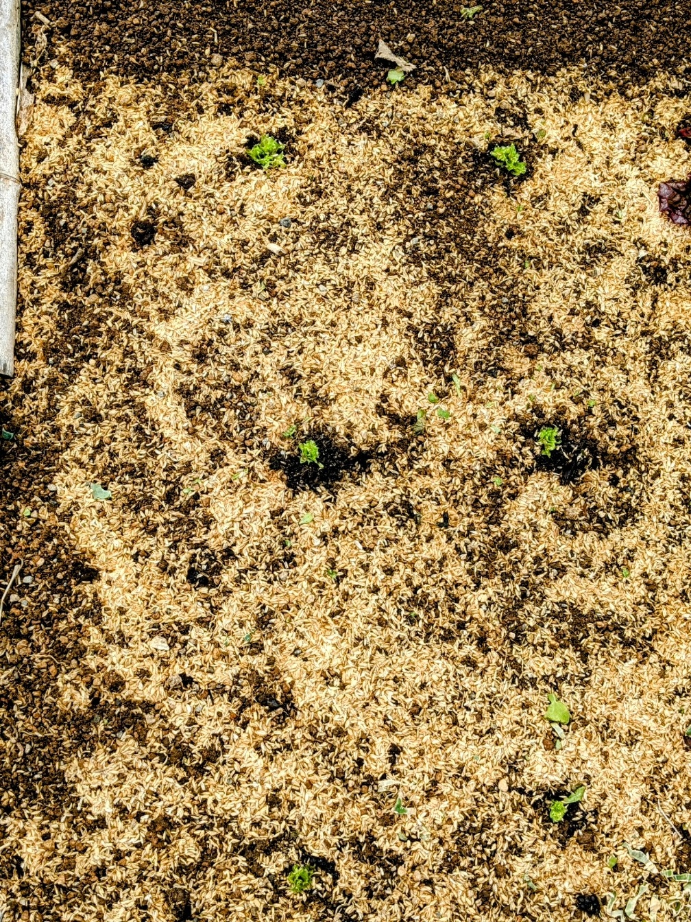 新年を迎えて 初めての畑遊びに出向いて来ました(短時間の2時間弱でしたが😂)前回の「サラダ菜」画像⬇️⬆️手前の横並びを一部を取り移植しました⬇️ ※どこを取ったか分からない程です手前に3列、ビッシリ生えた中に1列移植しました種から生えた「サラダ菜」は、このまま育てて大きくなった物から、順次採っていきますそれから「生ゴミ埋め込み」をやってからの草取りを少しだけやり外畝の【リンゴの丸畝】の横です綺麗に取っていたのですが、チッチャな双葉の草がた〜〜〜くさん生えていましたが完璧では有りませんが、一応見られる様にはしました「あっという間」の 2時間弱でした😂新たな年になり、初めての雨で早朝散歩は中止になりました雨は上がりましたので、午後から散歩は出来ると思っていますが・・・