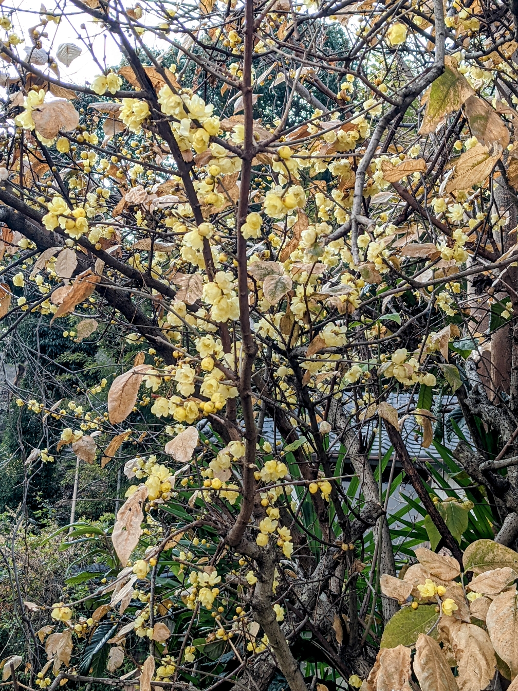昨日の午後から散歩🐾🚶で【満開の蝋梅】に遭遇したかなり大きな木の「蝋梅」です!蝋梅の黄色の花が輝いて見えます今朝も、その散歩🐾👫は完璧に済ませました😂昨日も「生ゴミ埋め込み」に畑へ出掛けたがその途中で「竹」を切って捨ててる場所に遭遇したのでその竹を戴いて畑に持ち囲んだ生ゴミ埋め込みを済ませてから、ヒヨドリから食べられたレタス畝等に持ち込んだ竹を立ててみたヒヨドリは、サニーレタスには口も付けてない ※サニーレタスは、灰汁が強いので嫌いなのかな? ⬇️サニーレタス ※この方法で効果が有るのかは不明です😢早く【サニーレタス】を持ち帰りたいが大事に育てて、もう少し大きくなってもらいたい😂