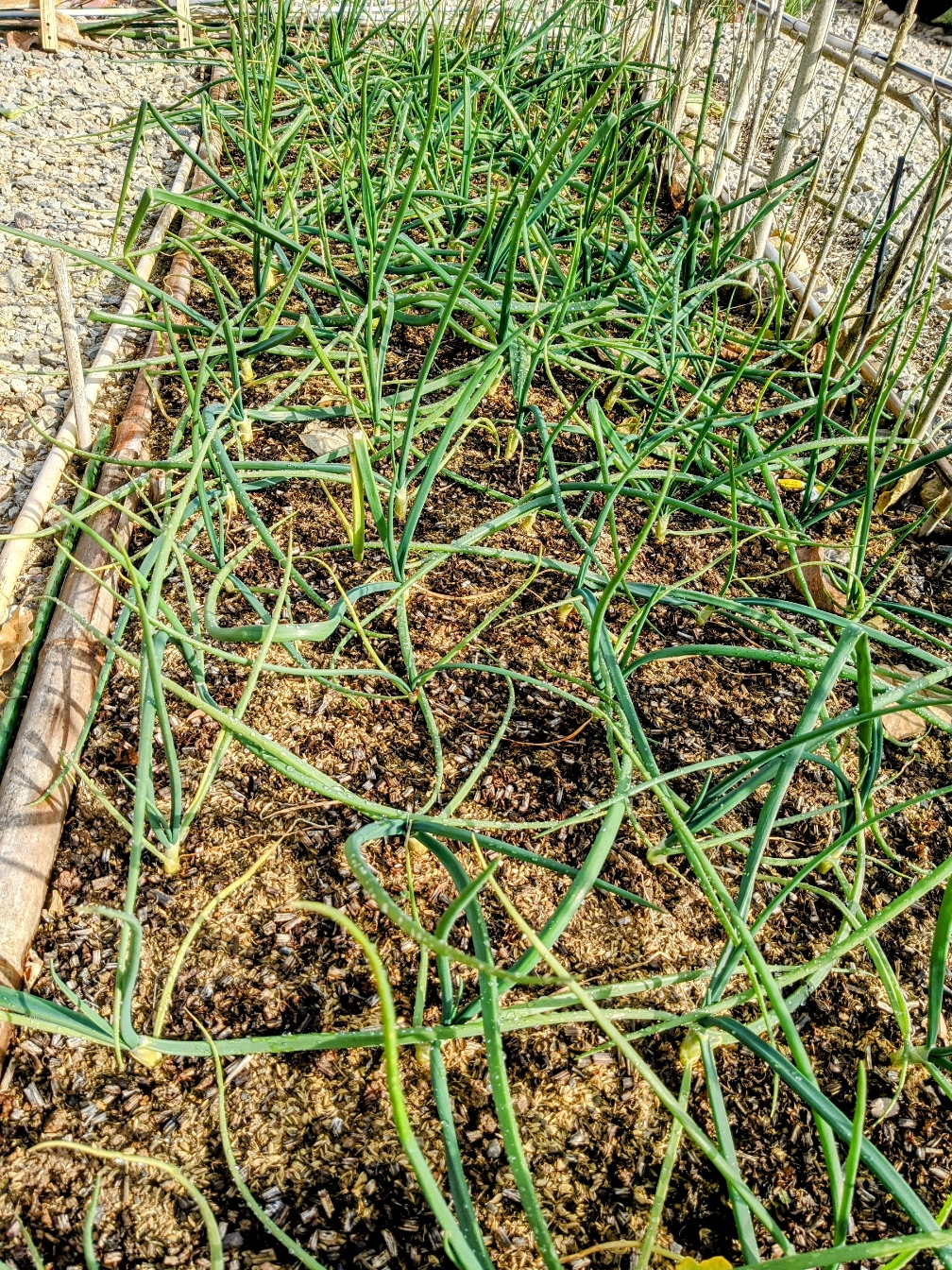 昨年植え込んだ中早生タマネギの状況です今の所、1本も枯れた蕪は有りません🧅 このまま大きく育ってくれるといいな〜そして、種蒔きした「サラダ菜」が密集して発芽しているこのままでは大きくなれないだろうから間引き移植して、混み合わない様にしようかな〜と思っている家内に昼までには戻ると伝えて来てるので「生ゴミ埋め込み」をして駐車場前の草取りを少しばかりやってUターンした駐車場は、これでOKかな?今年初めての畑遊びは、2時間弱でした😂