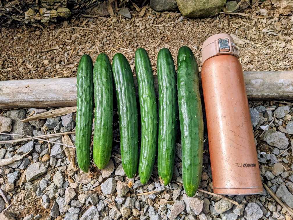二本の「秋キュウリ」苗を買い求め植え込んだ物が
