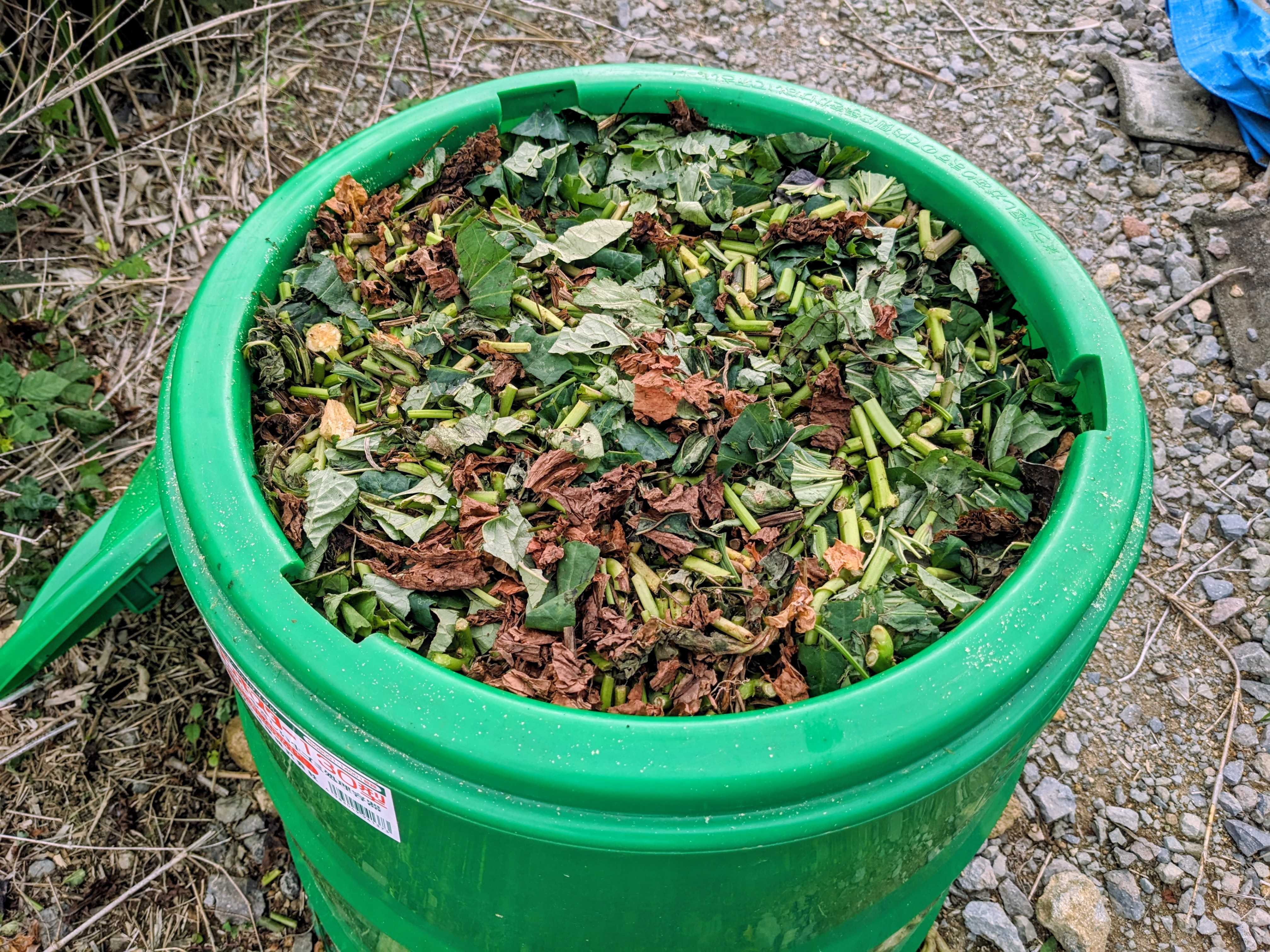 そして恒例の「芋蔓」は、切り刻んでコンポストに投入し