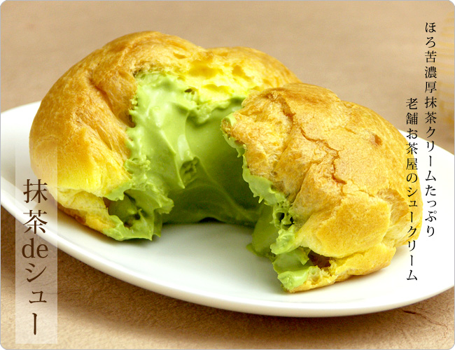 お茶とどら焼の胡蝶庵 長野県安曇野市豊科ランキング1位に輝いた老舗お茶屋のシュー【抹茶deシュー5個入】絶品ほろ苦抹茶クリームシュー老舗お茶屋が作っているだけに、抹茶のコクやほろ苦さにこだわった絶品抹茶シュークリーム。中の抹茶クリームは、カスタードにお茶屋こだわりの宇治抹茶を加えたホイップクリームをあわせ、甘さ控えめです。すべて手作りしているので、1日に作れる数は僅かとか・・・美味しそう!!ぜひご賞味を!!