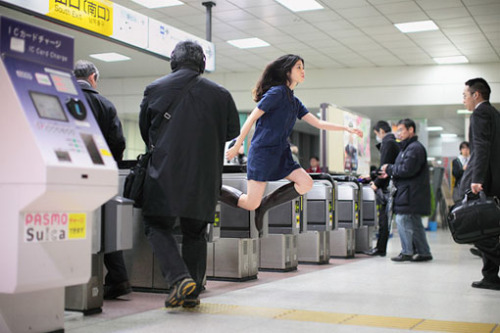 新聞を見てたら、こんな写真集の紹介が出てました。林ナツミさんとゆー、29歳の写真家で、自分が跳んだ瞬間を三脚に据えたデジカメでセルフタイマー撮影してるんだとか。林ナツミ「本日の浮遊」2011.2.21より近く「本日の浮遊」とゆー写真集も出版されるそうですが、ブログ「よわよわカメラウーマン日記」(http://yowayowacamera.com/)にも、たくさんの"跳んでる写真"が載っています。駅の改札とか、街の雑踏の中とか、家の周りとか、日常の光景の中で、ふわっと浮いてる人がいると、光景そのものが不思議な空間になっちゃう。でも、1枚撮影するのに300回も跳んだり、着地に失敗してケガしたり、不審者扱いされたりするそうで、やっぱり、水面下の現実は、そーとー過酷みたいです。・そーいえば、ずいぶん昔ですが、雑誌「話の特集」に、「跳んでください」ってゆーシリーズがありました。立木義浩の弟、立木三朗さんが撮ったものですが、人物写真の名作じゃないかと思っています。「話の特集」86号(1973.4)よりこの三波春夫さんや市川崑さんは、いかにもってゆーお姿で、懐かしい限りなんですが・・・こちらの黛さんと瞳さんのお姿は、なんと申したらいいか、妙に可笑しい。"跳んでる写真"、大好き!