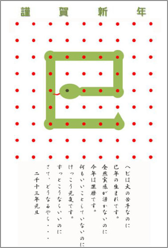 あけましておめでとうございます。はや1月も半ばですが、やっと年が明けたかんじです。先月から家族が入院したり、インフルにかかったり、元気だったのはワタシだけ。なんだか落ち着かない日々が続きました。そんなわけでブログ更新をサボってしまいましたが、そろそろ再開しようと思っています。ことしも、どーぞよろしくお願いします。年賀状が妙にカワイイいのは、録り溜めていたNHKの「デザインあ」を年末にまとめて見たせい。「カンレキ迎えたジジイの絵じゃねえだろう・・・」と我ながら思いつつ、けっこー気に入ってます(笑)。