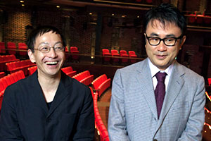 ちょっと前のネタで恐縮ですが・・・最近、とっても印象的だった写真がコレです。演劇「おのれナポレオン」の発表インタビュー(朝日新聞11/3)一癖二癖ありそうな笑いを浮かべた三谷幸喜(51)、片や、大口を開けて破顔一笑ってかんじの野田秀樹(56)。ともに今や日本を代表する劇作家・演出家ですが、この写真は二人のキャラクターの違いが際立って面白いのと、やっぱり、野田秀樹の笑顔がカッコイイですね。長年舞台に立って風雪に耐えてきた人の顔とゆーか、いい歳の取り方をしてきたなあ〜ってゆーかんじ。三谷幸喜が主演を依頼した理由が分かるような気がしました。・思えば、昔からなんですが、大きな口の人に心惹かれるとゆーか、ちょっと弱いとゆーか・・・。男ならローリングストーンズのミック・ジャガーとか、女ならカーリー・サイモンとか、大きな口がセクシーでヤバいです。二人が一緒に歌う「うつろな愛 You're So Vain」は、今聴いてもドキドキする(笑)。・昨日歯医者に行ったとき、「は~い、もうちょっと大きく口を開けてくださ~い」とかわいい歯科衛生士のオネーサンに言われて、ガァ~と思いっきり口を開けたら、ちょっと嘔吐いてしまい、涙目・・・(笑)。「だいじょーぶですかぁ~?」なんて言われながら、この写真のことを思い出して、やっぱり、野田秀樹はいいなあ~と思いました。