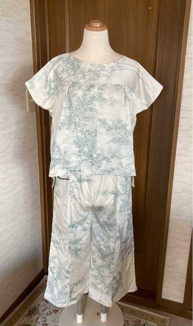 フリマアプリで買った付け下げのほどき生地を使い、シルクのパジャマを縫いました。