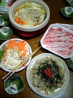 寒いデスネー 今夜はしゃぶしゃぶにしましたよー 部屋の窓が曇る~ でもあたたまる~ お鍋ばっかりですね。 明日の成人式の準備で忙しいので携帯からUPです。 朝早いので早く眠らないとねー 明日 晴れるといいですね。