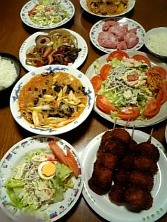 こんばんはー今日はがっつり食べたくて・・・・しっかり野菜も食べますよー ポテトのフライにソースをたっぷりかけて いただきますマーボー春雨は 永谷園の簡単にできるのなので5分でできちゃったー長ネギたっぷり入れて作りましたよー。冷凍室にあった まぐろの中落ちもたべちゃう・・・・生野菜は多めです。 今日は夕方スーパーへ出かけて、念願のアイスやチョコ 菓子パンが買えましたよー週末は色々食べたくなりますからね。いえいえ、 今夜さっそくアイス食べちゃおうっと にほんブログ村にほんブログ村 マーボー春雨 甘口 昨日はほとんど徹夜の長女ー 今から気晴らしでドライブにGOです。私が運転手では行ってきまーす。