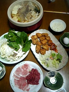 こんばんはー今日は久しぶりに買い物に行きましたほんと最近は4日目くらいに買いに行ってるー せこいでしょ。。。いくら食費がないからと言って、 よく食べてるでしょー♪ (笑) さて~ 今日はから揚げにしようと思っていたのだけれど・・・・「 パパが揚げもの嫌だな~」って言ってたなあーと思って、よーし、 お鍋でも作っておこうーと・・・・白菜 長ネギを入れてしばらく考えていたのだけれど冷凍室にある牛肉を使っちゃおーと思いすき焼きになっちゃいました。なんか 変な組み合わせでしょー 今日のから揚げは 大成功・・・・ドーンと大きめでカリカリジューシー温かいうちに スイートチリソースでいただきます 明日のお弁当にと思って、 このほかにから揚げよけてありますが、足りなくなって食べちゃいそうです。。。 すき焼きのお肉は 牛肉と豚肉の両方・・・・鶏肉のから揚げまであって、 大集合だねー今夜もがっつり たっぷりいただきました。ご飯はすこーしでねー にほんブログ村にほんブログ村 みんな大好き決定版!おつまみにも最適☆若鶏の唐揚げ 昼間は 随分と温かくなりましたねー陽射しが気持ち良くて、 ウトウトしちゃいます。。。なのに、 この時間でももう眠い・・・・寝る子は育ちますものねー(笑)ハハハ 子じゃなかった― 明日もポカポカいい日でありますように