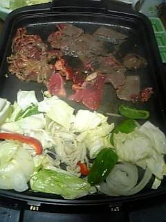 こんばんは。 今夜は焼肉でーす。 スーパーに商品が無くて焦りました。 肉もいいのがない~ もやしもないし、豚トロも牛タンもなかった。 牛カルビばかりで食べました~ でも野菜をたっぷり いただきましたよ。 すこーし 部屋が暖かくなったけど寒いデスネー 肩が張ってこまるわー 寒いので力入っちゃうからかな? 皆さんも風邪ひきませんように☆