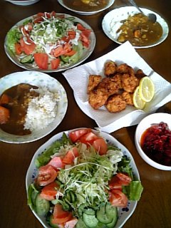 コンニチハー午前中は 病院へ行ってきました。いつもの血圧の薬だけもらってきましたが、 2時間かかっちゃいました待合室でじっと待つのも 疲れますねー そして急いで お昼の支度です。。。息子たち 一晩中起きていたのかなー 朝は起きてこないので お昼はしっかりとねー お餅ばかりで どうしても野菜が足りてないですねー今日は生野菜しっかり食べましょう今日のカレーは失敗です。煮すぎちゃって じゃが芋が溶けちゃったーですが、 美味しかったですよー から揚げ 揚げたてが美味しいですよねー夕飯に作る予定を前倒しです。今日は長女の誕生日です。ですが、今からバイトで9時過ぎまで帰りません・・・・何を作ってあげようかなー にほんブログ村にほんブログ村 から揚げ!チキンカレー!なんでもOK!超便利♪みえ鶏 (三重・松阪産) 新鮮なフレッシュ若鶏のモモ肉を食べやすくカットしました! 風が強いですよーどうか飛ばされませんように・・・・・??? 飛ぶわけない(笑)