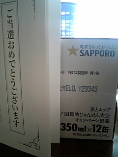 私、田村正和さんとじゃんけんをしたんです。 私は・・・・ グーを出しました。悩んで 悩んで グーッと力を込めて・・・・後で発表がありましたが、 田村さんは チョキやったー 勝ったぞー というわけで、 先ほど到着しました。たしかに年明けから 縁起のいい当選です。うれしいなあー今年はついてるかしらん?いいこといっぱいありますように