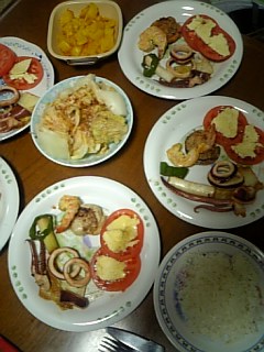 夕方は おやつをドサッと食べてしまいましたいけませんねーパパと息子は仕事で遅いので 夕飯を遅くしました。 今夜はホタテ エビ イカをちょっとずつ料理してワンプレートに盛り付けです。ホタテはソテー エビはフリッター イカは酒・醤油で炒め煮トマトにチーズをのせて レンジにかけます。さっぱり味で いただきます にほんブログ村にほんブログ村 たった今、 EXILE IDの福袋が届きましたーこんな遅くまで配達なんですねー 9時半ですよー驚き~いっぱい入ってるーキャーキャー言ってますよー 笑