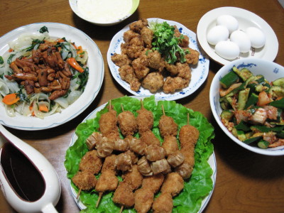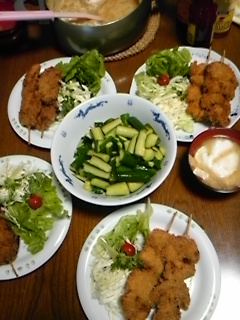 今日はいいお天気でしたね晴れているのに暑くない・・・・ すごしやすい最高のお天気今日から衣替えでも 半袖では寒いですね。 今夜は揚げもの食べたくてこーんな感じですポテトの串揚げ 揚げシューマイメインは チキン南蛮です。奥にあるのは モツの味噌炒めキムチきゅうり もちろんご飯は てんこもりでーす。 タルタルソースがたっぷりです。チキン南蛮なので 甘酢でいただきますよ にほんブログ村にほんブログ村 チキン南蛮発祥の地宮崎から本格派ジューシーなやわらかチキン南蛮をお届け【宮崎名物】 チキン南蛮(2人前) 今日は 病院の日~2週間おきに行きますが、 早く出かけたのが良かったのかすぐに呼ばれて思ったより早く帰って来れました。曜日によっても 混み方が違いますね そして、午後からはミシンばっかり・・・・最近は老眼で 眼がショボショボしちゃいます歳だなあーと しみじみ思いますよ。。。