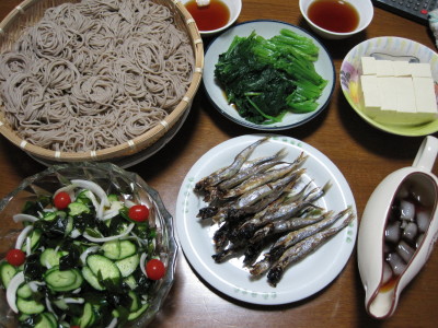 今日は爽やかないいお天気でした。夕方からいい風が吹いています日が長くなったので 網戸で風を入れてますよ。 簡単にお蕎麦を茹でましたよ。シシャモを焼いてきゅうりとわかめのサラダ小松菜のお浸しお豆腐 これだけ~肉 肉 揚げ物と続きましたので今日はあっさりとね。 今日の目玉の日替わり品は 小松菜57円 卵87円でした。スーパーも頑張っていますね。 有難いです☆ にほんブログ村にほんブログ村 山形の味 そばそうめん(250g)・酒井製麺所 今日は コカコーラさんから 公認ブロガーのご褒美でアクエリアス500ml24本いただきました。学校へ持っていけるので 有難いですよ。最近はチョコチョコと 宅配便が届くのでうれしいわぁー