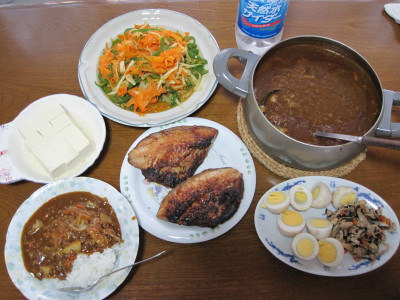 こんばんはー今日は朝ものすごい豪雨でしたが すぐに晴れ間が広がって時折 真っ暗雨になったり・・・・まさに不安定なお天気~ ひき肉たっぷりのカレーじゃが芋が1個しかなかったので、急遽ひき肉にしちゃいました。。。(お手軽簡単に~) 味噌漬えぼ鯛 ニンジンとピーマンの塩炒めなどなど・・・・・クーラーつけて もうやることなし。。。今朝は4つお弁当でした。なんか食べることばかり考えているみたいね にほんブログ村にほんブログ村