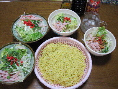 このところ 蒸し暑くなってきましたこんな日の夕飯は これが一番ですね。 シマダヤの流水麺を使ってサラダうどんにしました★どんぶりから 野菜が溢れていますが・・・・笑 流水麺って 茹でなくていいから 主婦にとっては有難い水を通すだけ~ 器に盛って上に野菜をのせて今日は担担麺ごまだれをかけていただきました。 サンプル百貨店さんで当選したものです。新しく中華めんも出ましたねースーパーで何回か買ってつけ麺で食べてみるとおいしかった~ 中華めん1袋を お隣さんのお婆ちゃんに差し上げました。一人暮らしなので充分ですね。どうやって食べるのかしら~ って聞かれたので麺つゆにラー油か、ごま油をすこーし たらして食べて見て~ってお渡ししました。「シコシコして おいしかったよー 簡単でいいね。酢も入れて 冷やし中華みたいにして食べたよー 」って。 我が家でも うどんだけでは 足りないのでつけ麺で中華めんもいただきましたよ。ラー油がいい仕事してくれますねーちょうどいい固さで くせになりそうです ★☆★自由にたれを作って 食べれるのはいいですが、そこは横着な私~小分けされたたれがついてたらもっと嬉しいなーって思っちゃいました。 ★☆★一人1袋でも足りないくらいの我が家・・・・大袋があったら うれしいな。 ★☆★そば うどん 中華めんときましたら、残るはパスタですよね。簡単に 冷製パスタが出来る麺があれば夏の麺物 大活躍ですね~ 簡単にシコシコ麺がすぐ食べられる~流水麺は シマダヤ~おいしい~
