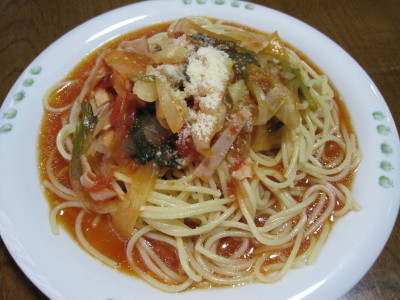 今日は夕飯早いですよー5時に食べちゃいました。パパも長女も帰りが早く、息子も6時からバイトなので大急ぎで作ったパスタですトマト―ソースの鍋の素が残っていたので、ホールトマトや 玉ねぎ キャベツ ハム ニラを入れて具だくさんソースにしました。。。 テキトーに作っても それなりにおいしいのでした(笑) にほんブログ村にほんブログ村 今日は晴れてるなあーと思ったら、厚い雲に覆われたり、今はカエルケロケロ いつ雨が降ってもおかしくないです。 どうして一日が早いのでしょうか・・・・洗濯 掃除 天国の階段 片付け お昼 韓流ドラマや大奥を観ながらの縫い物夕飯の支度 片付け ・・・・・ のんびりしてるかなー?(全然忙しくなさそう~って) 最近かなり手抜きな夕飯で節約まっしぐらです★ お子様から大人まで人気のツナと完熟トマトを使いトマトの旨味がわかる味に仕上げました。ツナのトマトソースパスタ 1人前