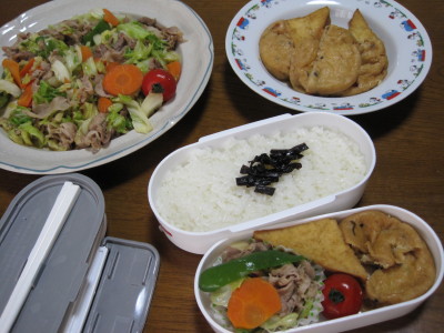 今週はパパが遅番なのでお弁当が始まります。おにぎりだけとはいかないので、適当に詰めちゃいま~す★厚揚げ がんもどきを煮つけて ドーンとお弁当に入れちゃいます。野菜炒めでごまかして~っと。。。 お昼をしっかり食べてから 夕方食べるお弁当を持っていきます今パパは 出勤前の爆睡中です。 やっと 娘の服が形になりました。水色シャツのキョロットワンピースです あり合わせの生地で作ってみましたが、家でゴロゴロするのに 涼しくていい感じです。下はキョロットスカートになっているので 動きやすいデース。 次は 小花柄でキャミワンピースを作りたいと思います。チビチャンもいるし 誰が着てもいいかな作るの楽しいので 止まりません~笑 にほんブログ村にほんブログ村 今日は朝から雨ですが、 少しだけ明るくなってきましたよー梅雨に入って 湿気が嫌ですが、気持ちだけは カラッといきたいものですねー