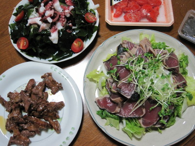 今夜は カツオのたたきです★玉ねぎやレタス たっぷりで~たこのサラダや 明太子も食べちゃいます★ そしてこれ~ 先日 モラタメさんでタメした 豚ハツに これをまぶしてフライパンで両面焼いて最後に水を入れて 蒸しました。肉に味がこってりと絡みついて お酒の肴にぴったりです。これは我が家の定番おかずになるかもですもちろん お弁当のから揚げに便利です。 簡単に作れる天ぷら粉こちらも簡単に作れます。冷めてもカラッとしていますよ。5こづつ 10個で送料関係費840円でタメしました。明日 かき揚げを作ろうかなー にほんブログ村にほんブログ村 簡単焼くだけ国産豚ハツ豚ハツ塩ダレ!国産豚ハツ塩ダレ! いいお天気でしたね。そして今夜から クーラーのスイッチONですよ。夕方は外で風にあたっているのが気持ちいいですよ。