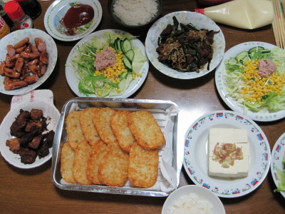 今日も暑かったですねー曇っているのに 暑い~ お弁当に入れてもいいようなおかずばかりになっちゃいました。見るからに 冷蔵庫の残り物でパパッと作った夕飯です。生野菜がメインのような気がしないでもないようなあるような・・・・どっちだ~笑 明日 買い物に行かないとねえ―給料日前の節約ということで・・・・・ にほんブログ村にほんブログ村 ハッシュドポテト【10枚入】 今朝は3時くらいに起きちゃってパパは4時にご出勤~昼間も寝れなかったので この時間でもう眠い私です日が長くなって 起きてる時間長くなってますねー明日は カラッと晴れて欲しいものです。