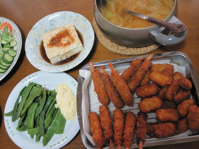 暑い~今日は曇ったり 雨降ったりそうかと思えば 午後から晴れていましたね蒸し暑い~ でもでも 頑張りました肉 玉ねぎ 肉 玉ねぎと交互なので かさまし~一人2本ねー大根のお味噌汁には おとし卵でーす★チリソース ソース マヨネーズ いろいろかけちゃいます。 にほんブログ村にほんブログ村 ★タイムセール【業務用 訳あり】【303】豚串カツ10本入り×1袋(1個約40g)【定価1,200円が768円】 日本の皆さん ほとんどが寝不足ではないかしらん今夜は早寝しなくちゃねー