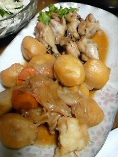 こんばんはー今夜は 肉じゃが食べたいなあーと思っていました。そうだー 手羽元でつくろーいつもは豚バラ肉だけど 鶏手羽元で作ってみました。手羽元の表面を焼いてから 圧力鍋で煮込んだのでとても柔らかいです。手羽元 もっとたくさん入れればよかったなあー 鶏そぼろは生姜のすりおろし たっぷりです。きゅうりハムの マヨぽん和えです。マヨネーズとポン酢 醤油少々で和えました。 お刺身や お豆腐 もあります。御馳走様でした にほんブログ村 にほんブログ村 国産若どり手羽元 100g~ 今日は夕方 大雨と雷がすごくてすごくて・・・・怖いですね~今はおさまりましたが、明日明後日と雨みたいです。。。明日はお彼岸なので実家へ行きまーす。