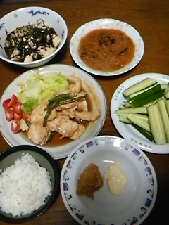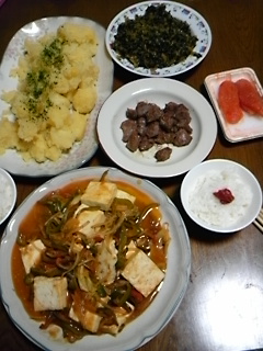 何だかねえ― 3時くらいにラーメン作って食べたので夕飯食べれないよねー という微妙な感じのままおかずになりそうなもの・・・・ 適当に作りました。 キザミ昆布 豆 お豆腐を 麺つゆと砂糖で煮つけました。煮物はホッとしますよね。 鶏胸肉を薄くそぎ切りにして醤油 酒 砂糖 そして黒酢を最後にまわし入れ照り焼きにしますご飯に汁ごとかけたいくらいです。。。 マーボー春雨や 生きゅうりを味噌つけていただきます。ご飯を食べたのはパパだけ・・・・・みんなおかずだけ食べましたが夜中にお腹空いちゃうかなー チビチャンが明日のテストのために頑張っていますので家族が全面協力です。早めに食べて 集中ですね。夜中に何回も起きているので今夜はもう眠いです。明日もパパは4時に仕事に出掛けるので、 もう寝ますねー にほんブログ村にほんブログ村